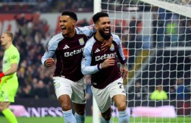 在弥漫着欧冠资格争夺战火药味的维拉公园球...