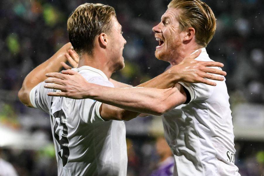 两名英超新援联手破门!那不勒斯客场3-1击败佛罗伦萨的比赛中,德布劳内第6分钟点球命中,霍伊伦第14分钟单刀建功,帮助卫冕冠军以3战3胜的完美战绩继续领跑意甲,进攻端的高效表现成为球队获胜的核心。
